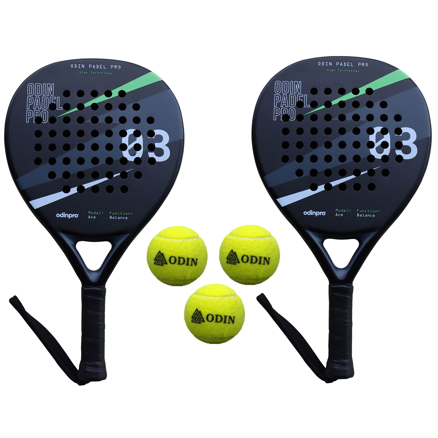 Odin Padel PAKKETILBUD (Odin Padel Ace 3K Advance + Odin Padel Bolde – 3 stk.)